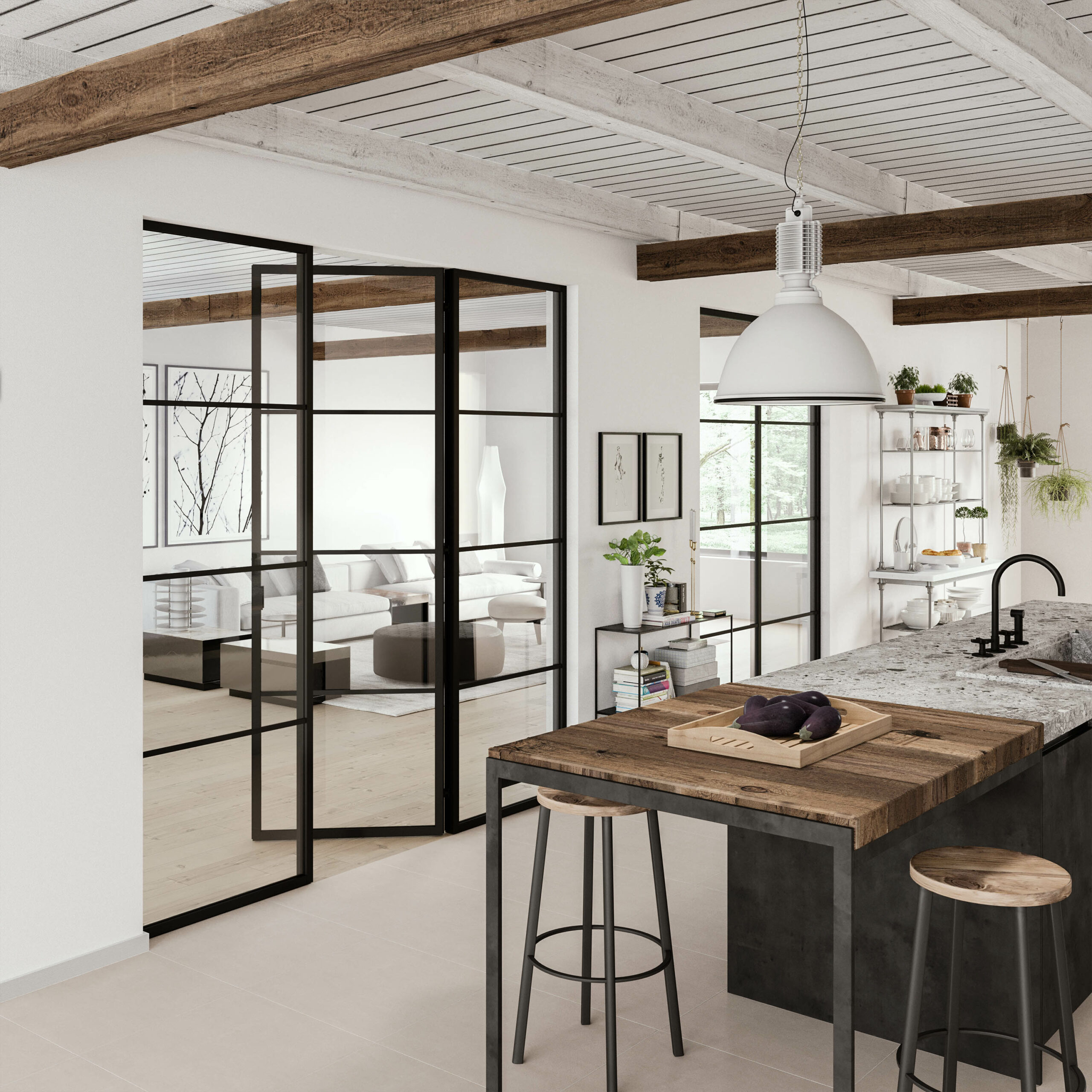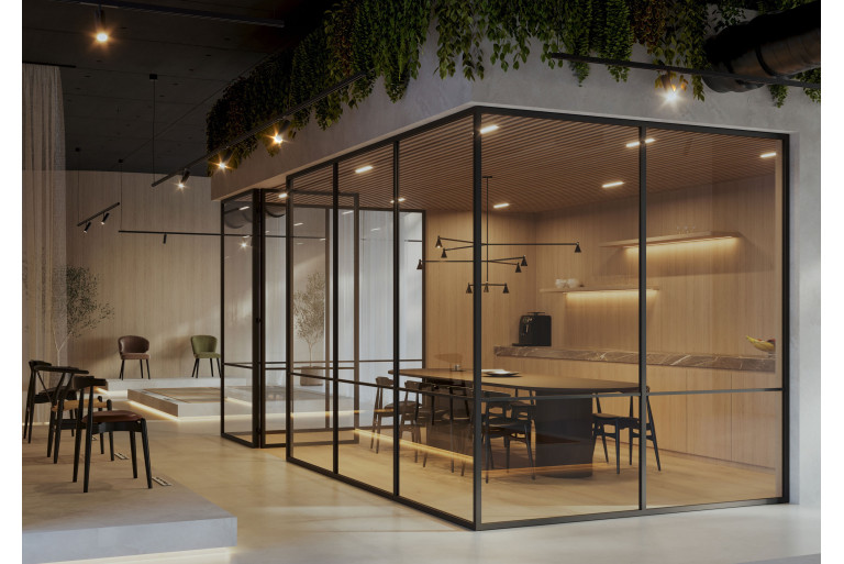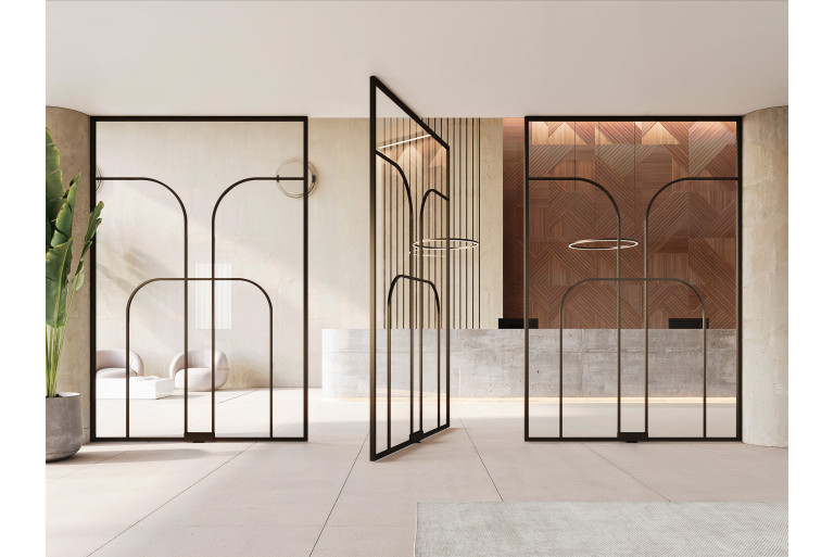 Divina – tai modulinė architektūrinė stiklo pertvarų ir durų sistema, sukurta erdvėms padalinti neatimant šviesos ir atvirų erdvių. Aliuminio profiliai ir stiklas sukuria plieno imitacijos estetiką, tinkančią namams, biurams, viešbučiams ir restoranams.