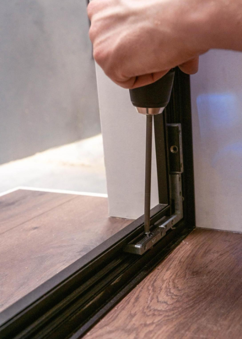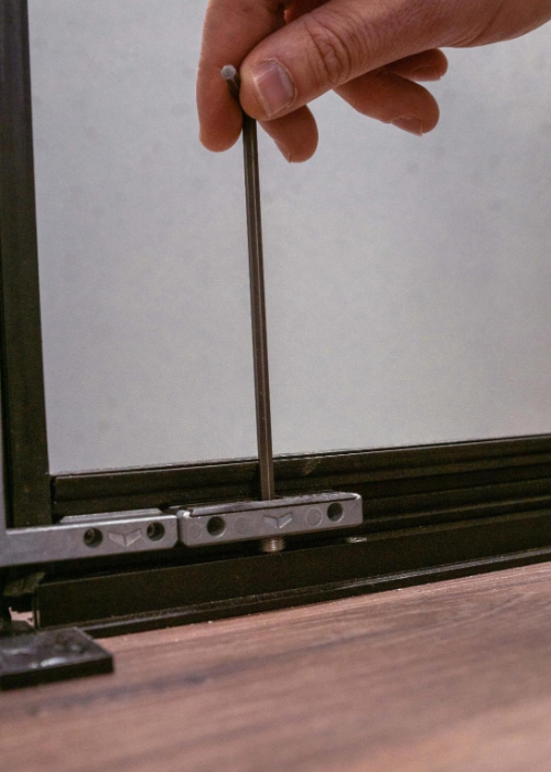 8. Durų furnitūros mechanizmo prisukimas ir sureguliavimas
