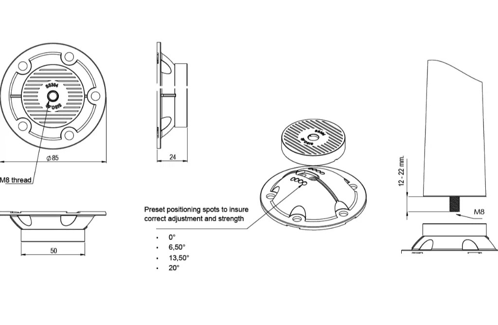 Pakartojamas rezultatas: fiksuotos kampo padėtys 0° / 6,5° / 13,5° / 20° padeda išlaikyti vienodą kojelių geometriją serijinėje gamyboje.