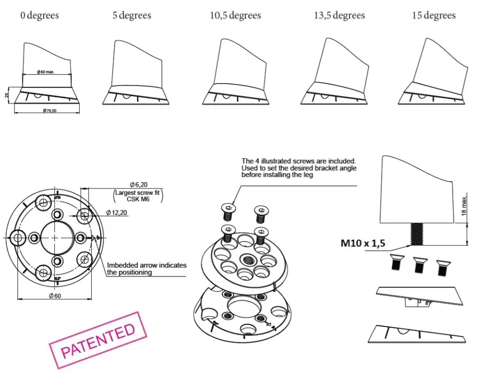 Reguliuojamas kampas 5 pozicijomis: greitas suvedimas į norimą kojelės pasvirimą be papildomų detalių.