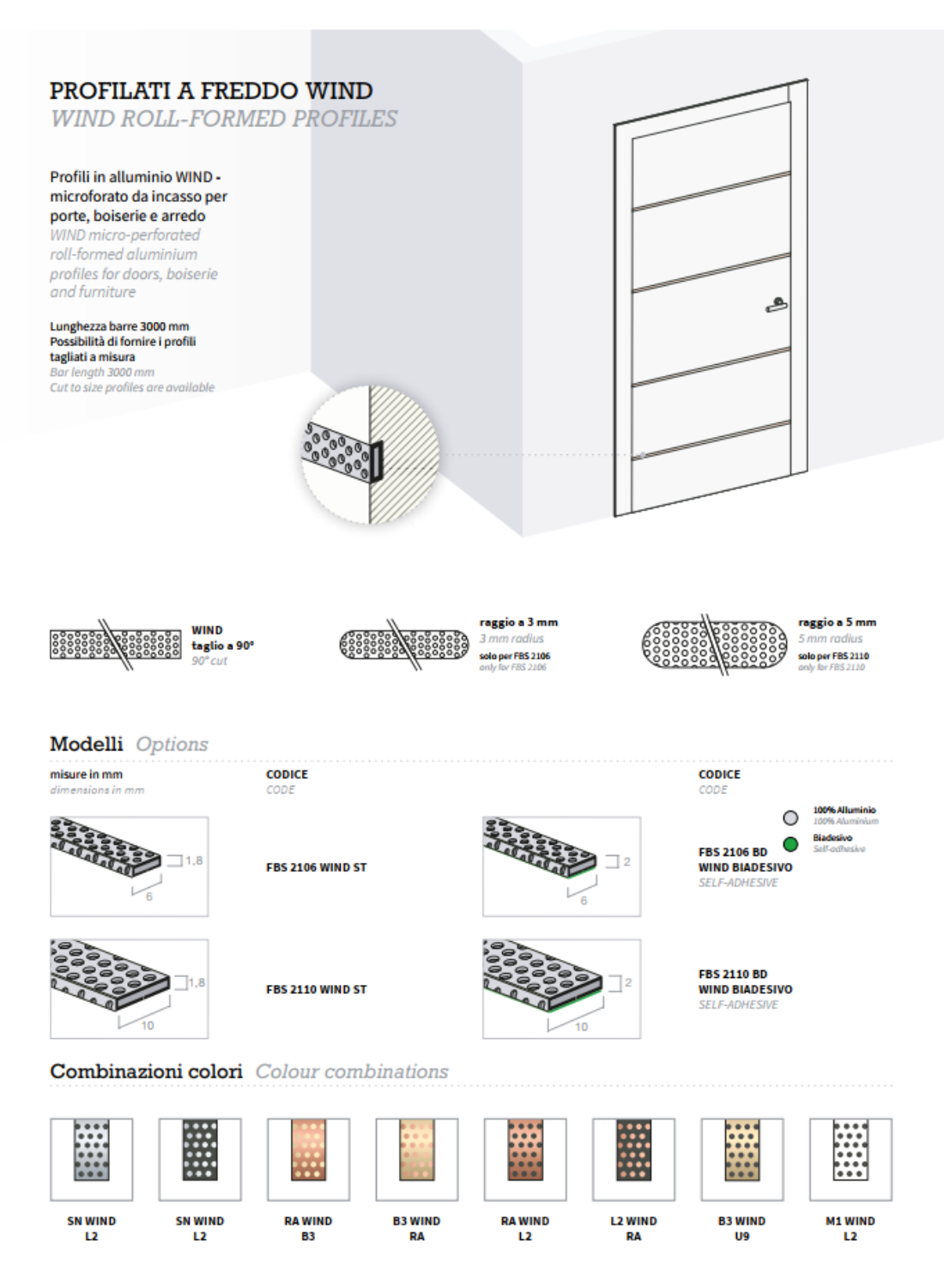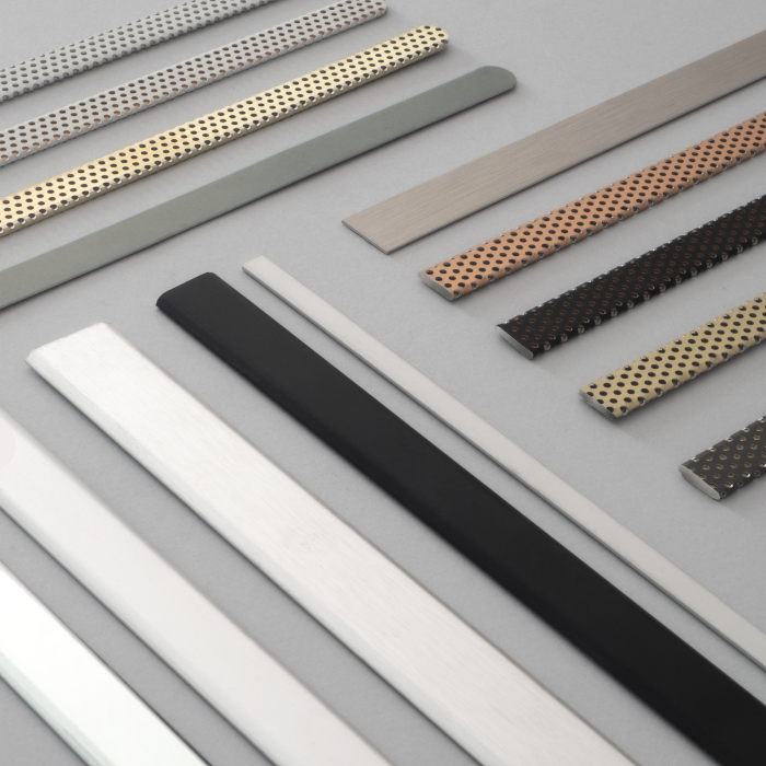 Anoduotos spalvos: A–Brushed, A2–Inox Brushed, B–Mill Finish, B2–Mill Inox, B3–Mill Gold, D–Chrome, D2–Polished Gold, D6–Brass Gold, R2–Polished Copper, RA–Copper, SN–Sat Nat