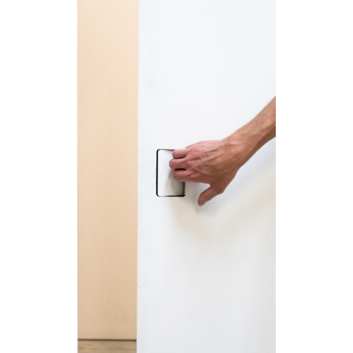 Diskretiškas dizainas: rankena beveik netrukdo durų estetikai, nes ji beveik neišsikiša iš durų paviršiaus.