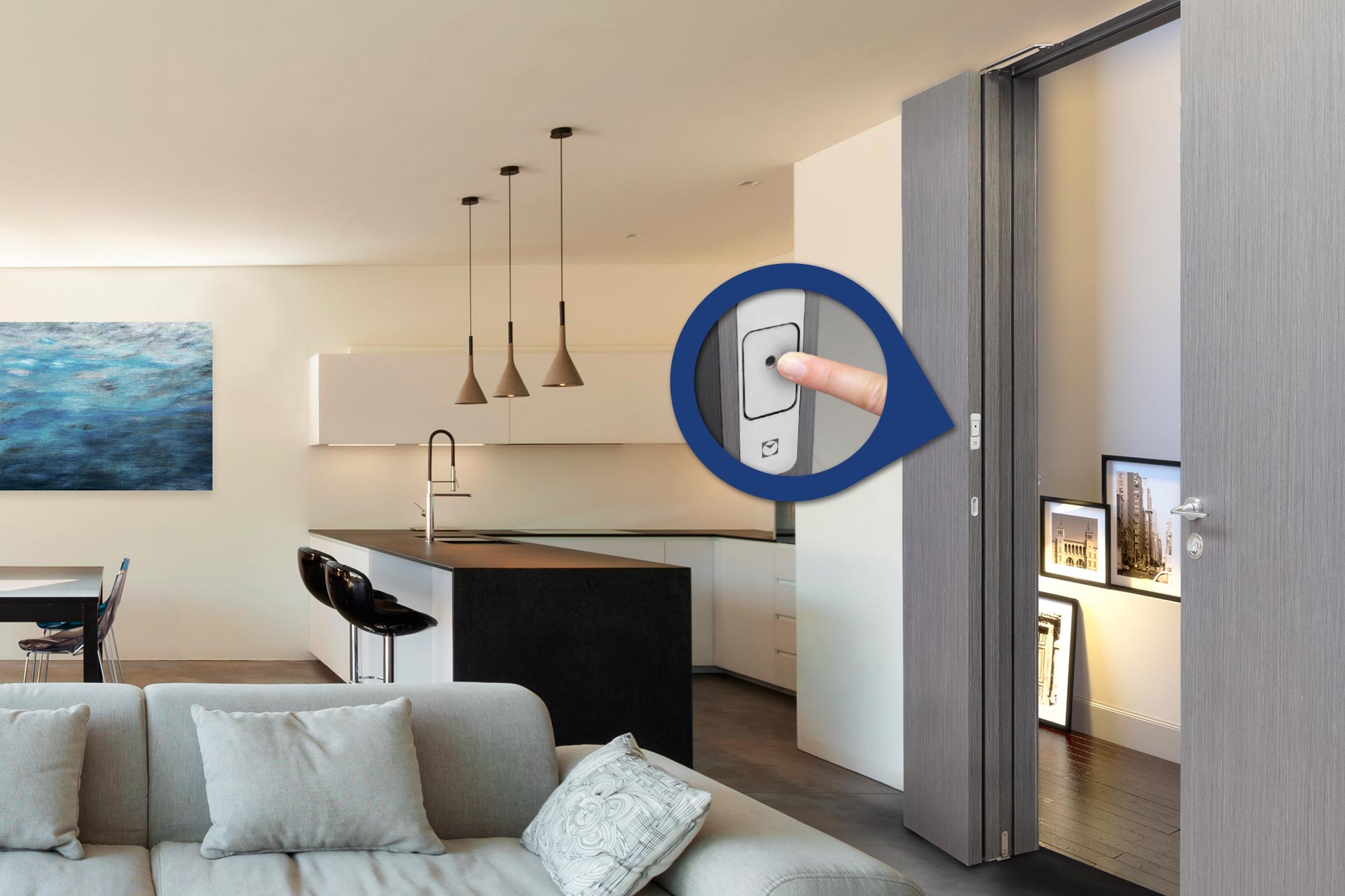 Paslėpta magnetinė sistema durų viduje, pagerina durų dizainą.