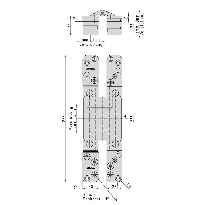 Universalus modelis – tinka kairėms ir dešinėms durims, durys gali atsidaryti iki 180°.