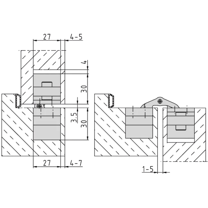 Durims, kur svarbus švarus vaizdas be matomų vyrių – modernūs interjerai, nematomos durys, „slaptos“ spintos, techninės patalpos ir pan.